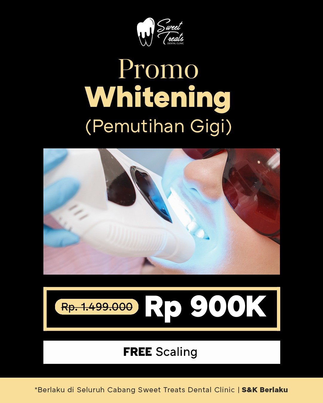 Dapatkan layanan whitening gigi di Sweet Treats Dental Clinic dengan harga promo Rp 900k